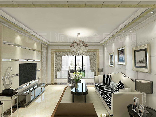井格式吊頂是通過頂面的造型所制作的假格梁的一種吊頂形式。配合燈具或多種裝飾線條進行裝飾,豐富天花的造型。